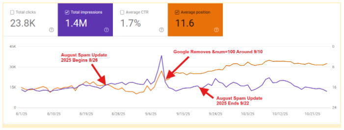 In early September of 2025, sources first observed that the &num=100 search query parameter was no longer working. By mid-September, without any word from Google itself, sources theorized that the company was testing the removal of the 100-results-per-page option. Industry reports started connecting the change to anomalies in Google Search Console (GSC) data. Finally, about 10 days from when the change was first observed, Google announced that it no longer supports &num=100.